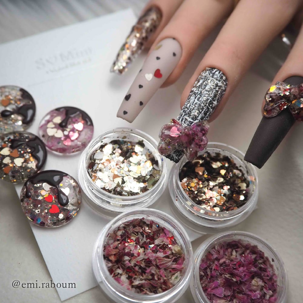 様々な素材が重なり合う立体感と存在感がハンドメイドやネイルアートにピッタリ!