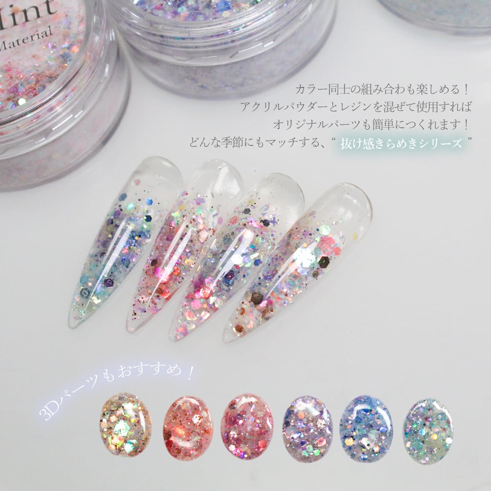 エスミント アクリルパウダー 3Dアート スカルプ スカルプチュア ネイル ジェルネイル ネイルアート カラフル ラメ キラキラ ネイルパーツ レジン レジンパーツ ドライフラワー オーロラフレーク ロングネイル 長さだし