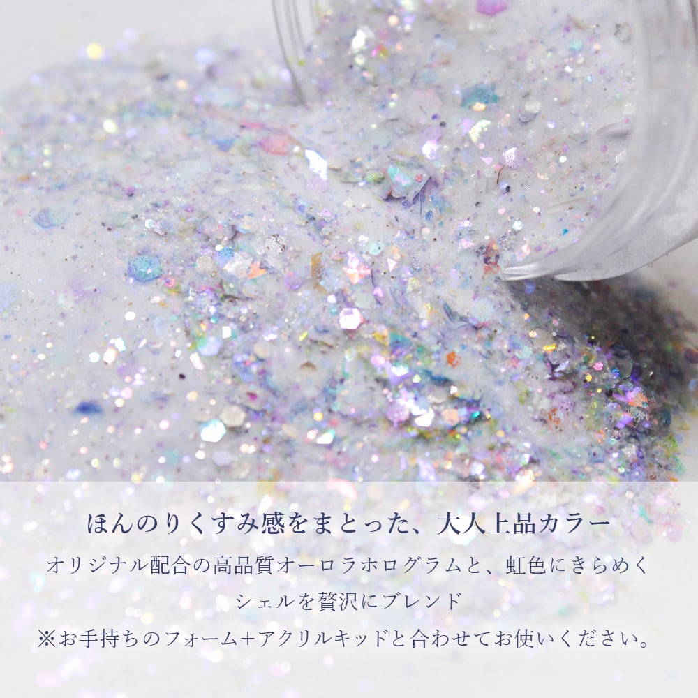 オリジナル配合の高品質オーロラホログラムと、虹色にきらめくシェルを贅沢にブレンドしました。