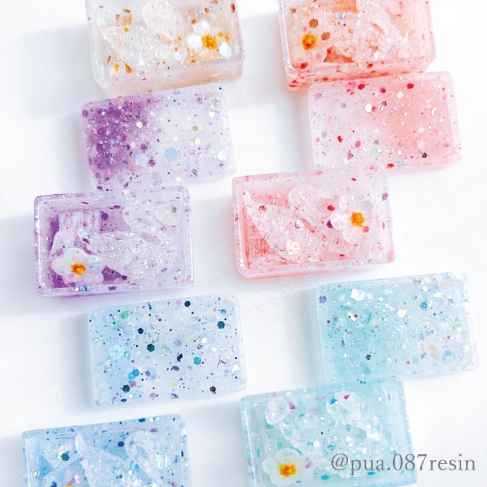 カラー同士の組み合わせも楽しめ、アクリルパウダーとレジンを混ぜて使用すれば、オリジナルパーツも簡単に作れます。