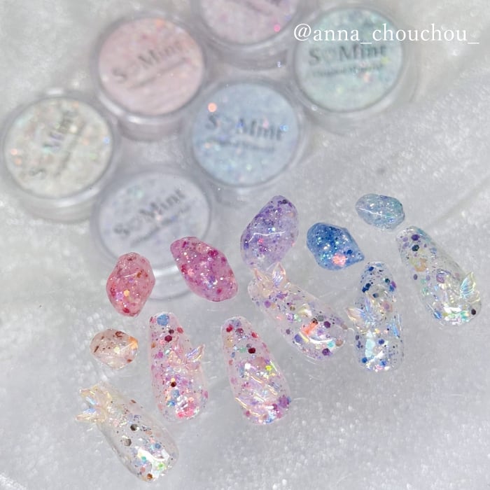 エスミント アクリルパウダー 3Dアート スカルプ スカルプチュア ネイル ジェルネイル ネイルアート カラフル ラメ キラキラ ネイルパーツ レジン レジンパーツ ドライフラワー オーロラフレーク ロングネイル 長さだし