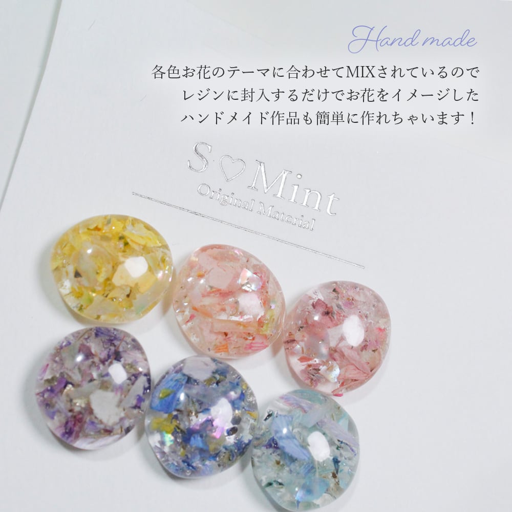 各色お花のテーマに合わせてMIXされているので、レジンに封入するだけでお花をイメージしたハンドメイド作品も簡単に作れちゃいます!