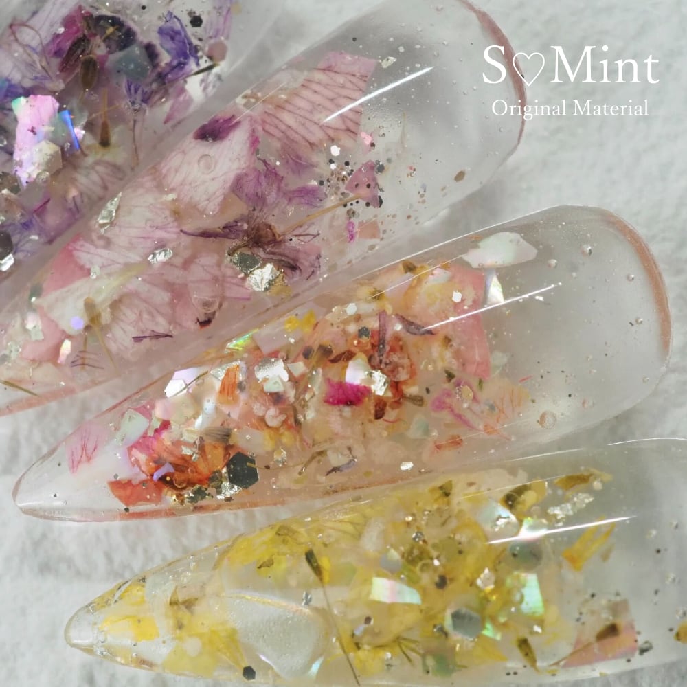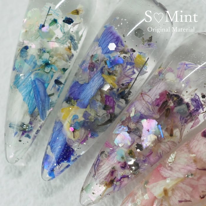 ミックスフラワーシリーズは、数種類のドライフラワーやホログラム、ラメ等が、色や形、バランス良くミックスされています。