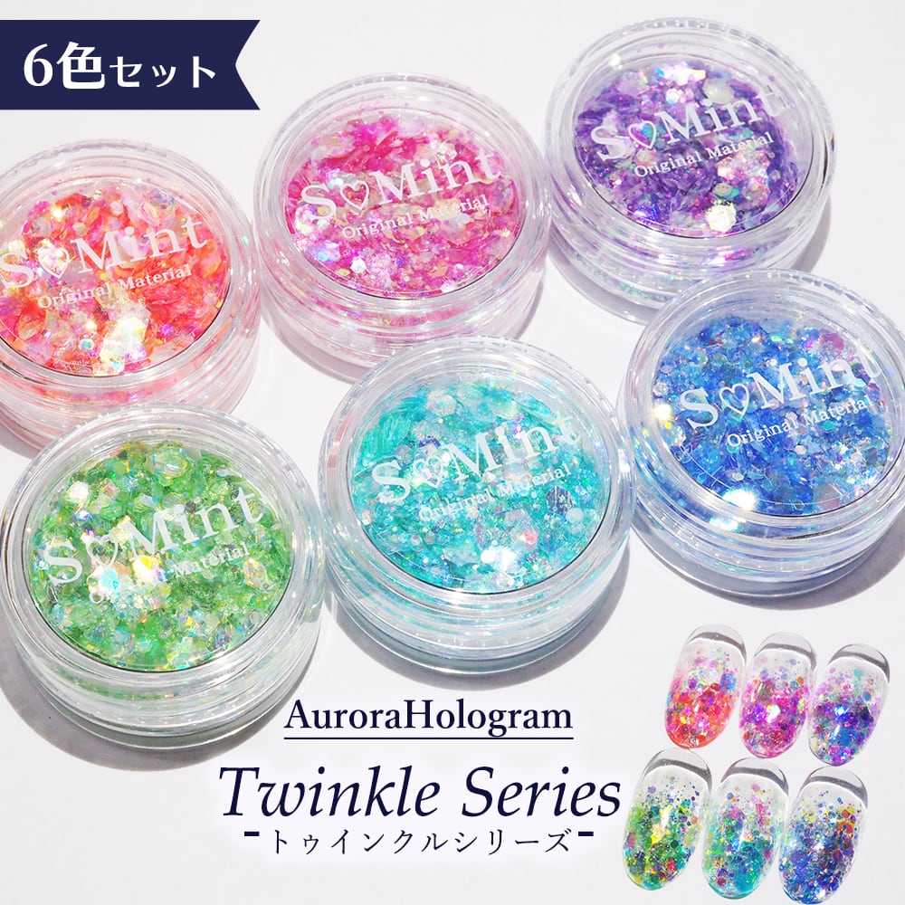 10色以上5サイズ以上のサイズやカラーの高品質ホログラムをブレンドしたエスミントのオリジナルホログラム【Aurora Hologram-Twinkle series-(トゥインクシリーズ)6色セット 】です!