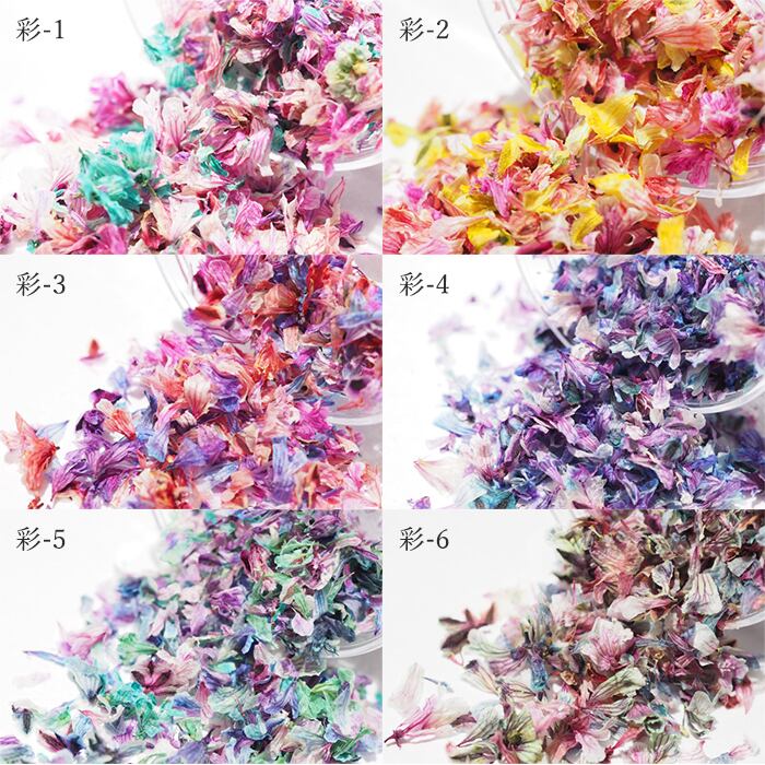 上品なネイルデザインやアクセサリーに仕上がるようイメージをして販売セットをご用意していますので、お花の種類によっては、花びらの大きさが揃っていないものも含まれます。