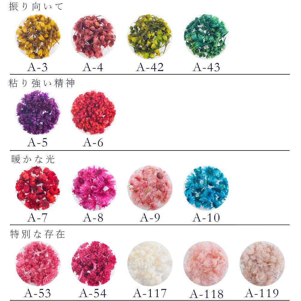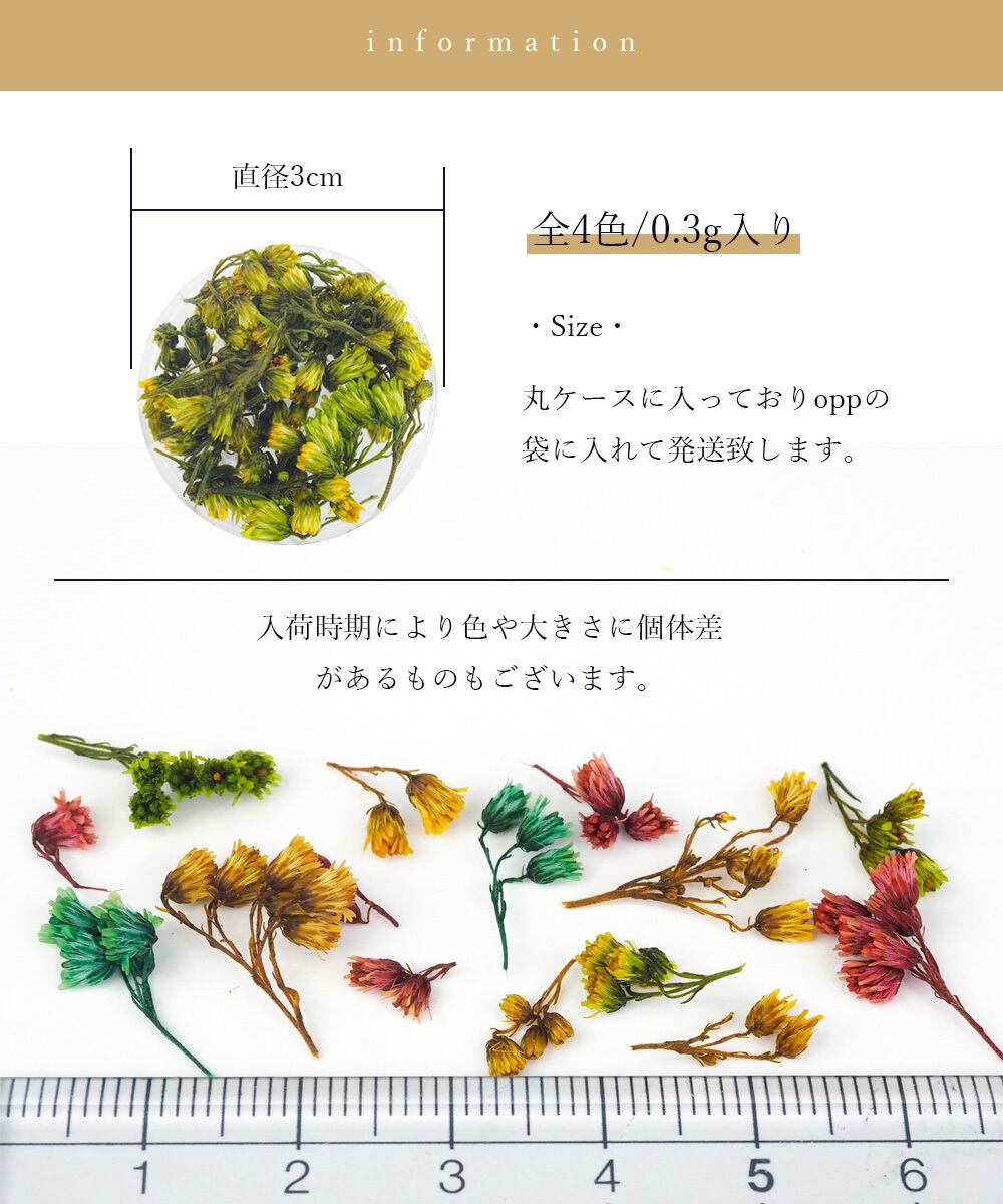 ネイルアートや様々な作品づくりにお使いいただけるように小さ目のドライフラワーを取り揃えています。