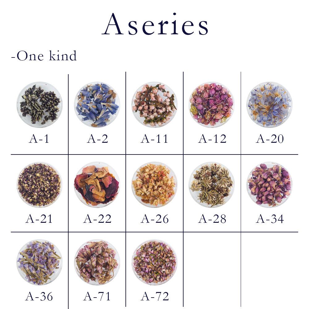 ネイルアートや様々な作品づくりにお使いいただけるように小さ目のドライフラワーを取り揃えています。