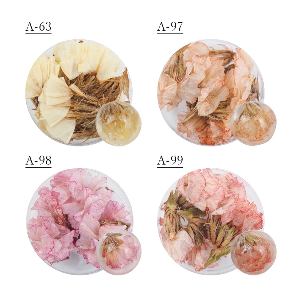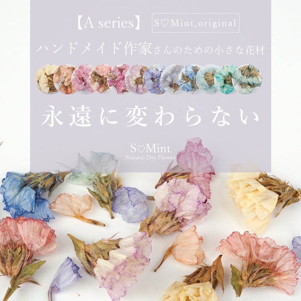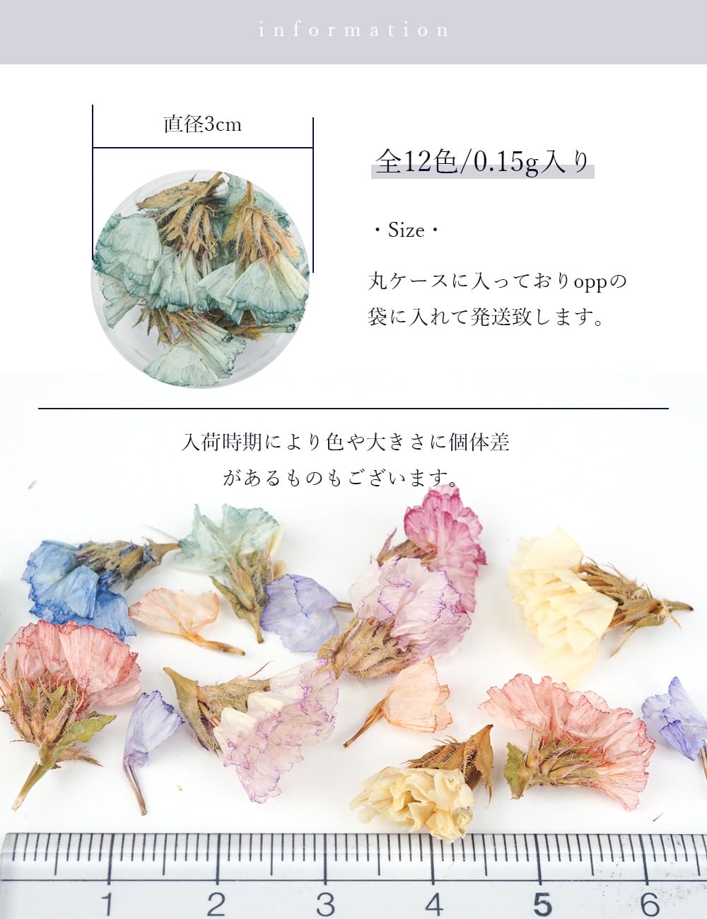 ネイルアートや様々な作品づくりにお使いいただけるように小さ目のドライフラワーを取り揃えています。