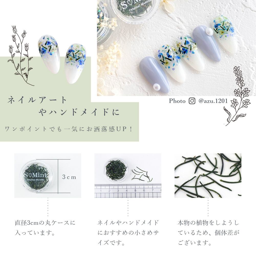 エスミント シエル ドライフラワー リーフ 葉類 ボタニカル 押し花 花 プリザーブドフラワー ネイル ネイルアート ネイル用品 ネイル用押し花 ネイルパーツ アクセサリー アクセサリーパーツ パーツ ハンドメイド ハンドメイド材料 ピアス レジン ハーバリウム かすみ草 レースフラワー ガーベラ デコ デコパーツ botanical nail nailart