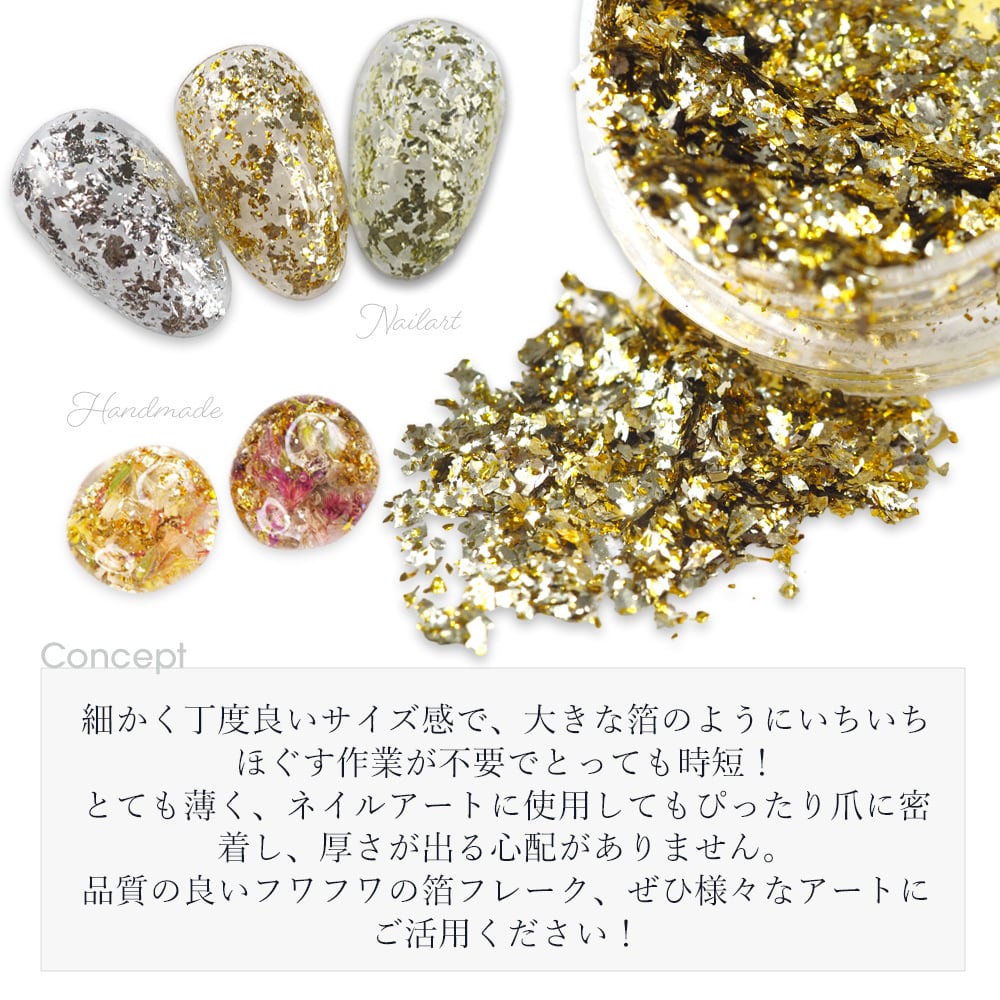 品質の良いフワフワの箔フレーク、ぜひ様々なアートにご活用ください!