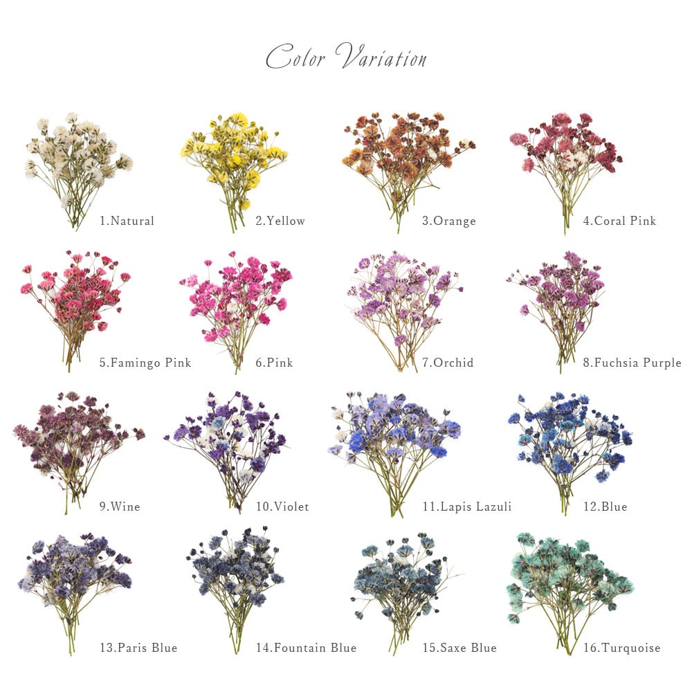 ・お花は生のお花を染色し、ドライや押し花に加工していますので、画