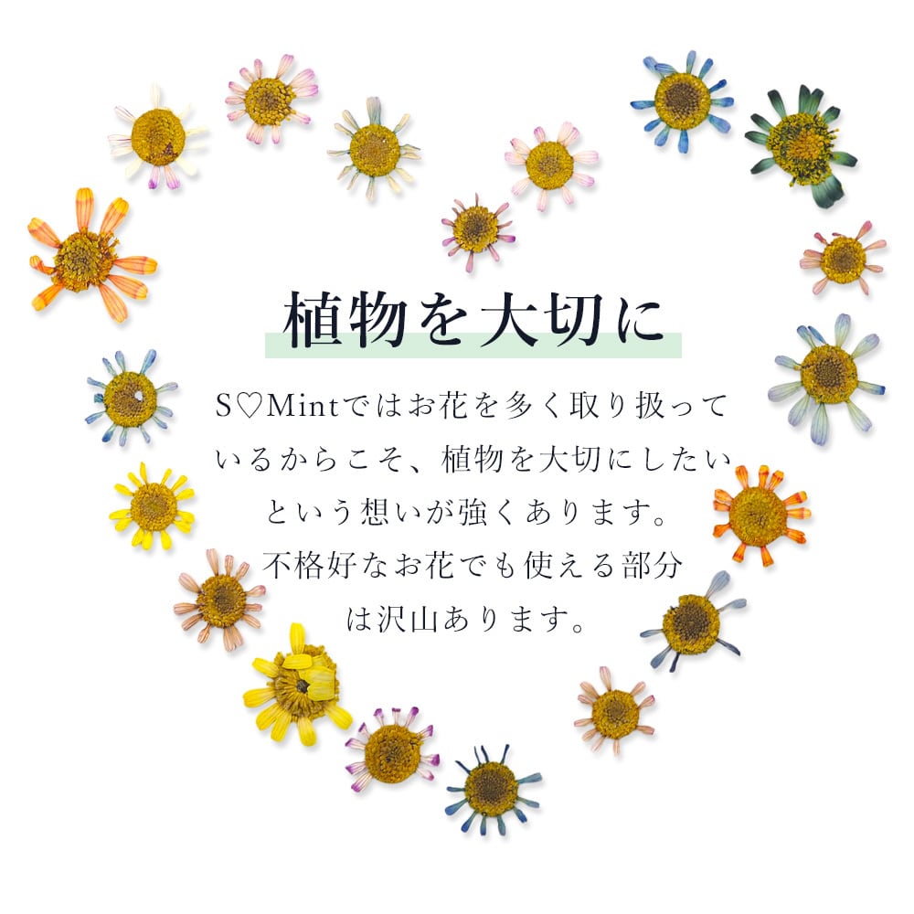 通常のチャームフラワーは綺麗な状態のものを入れてお届けしますが、生産する中で規格外のお花が多く出てしまいます。