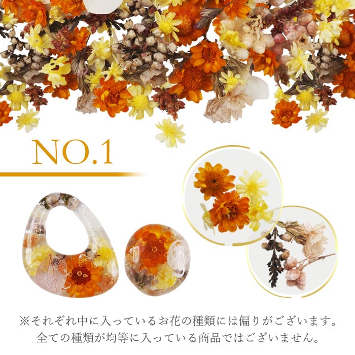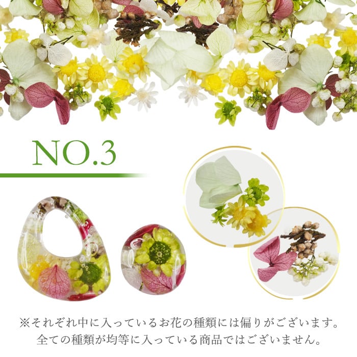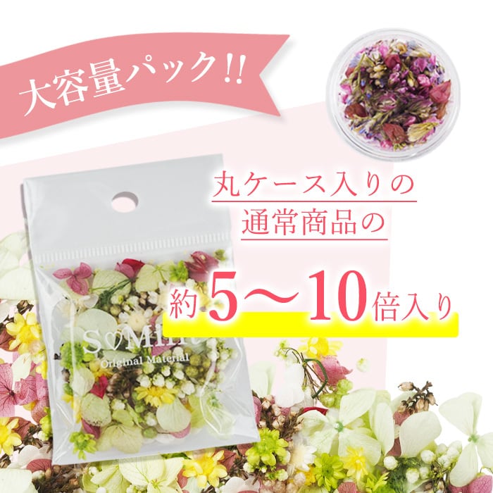 上品なネイルデザインやアクセサリーに仕上がるようイメージをして販売セットをご用意していますので、お花の種類によっては、花びらの大きさが揃っていないもの、花びらがかけたお花なども含まれます。