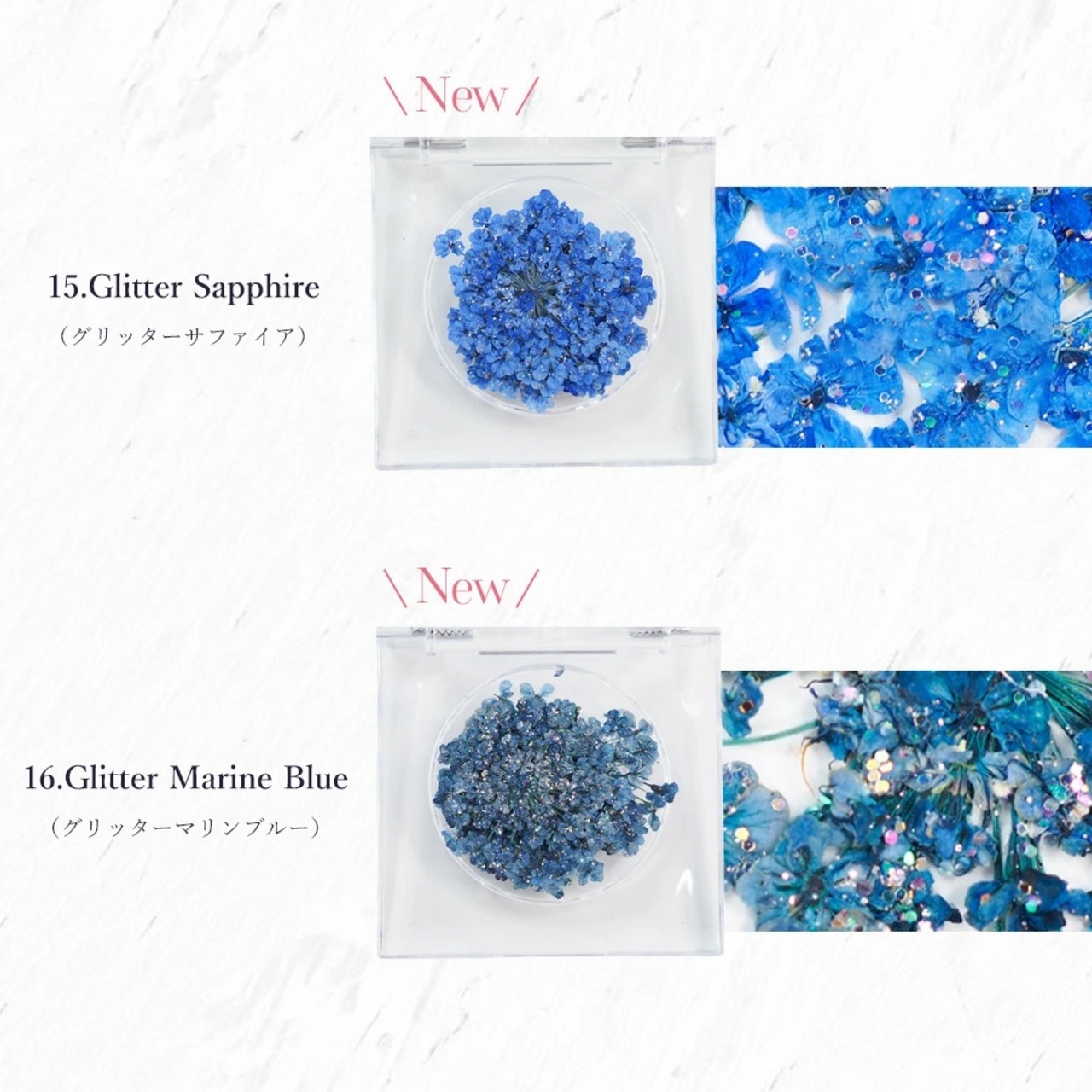 Lace Flower(レースフラワー)から新しくキラキラのシリーズが新登場!丁寧にプレスされた押し花1枚1枚に細かな微粒子のキラキラが付いています!ネイルへ埋め込んだり、レジンに入れてもその輝きはしっかり持続します。今までに無いキラキラ押し花!ワンランク上のネイルアートやハンドメイド作品が作れること間違いなし!