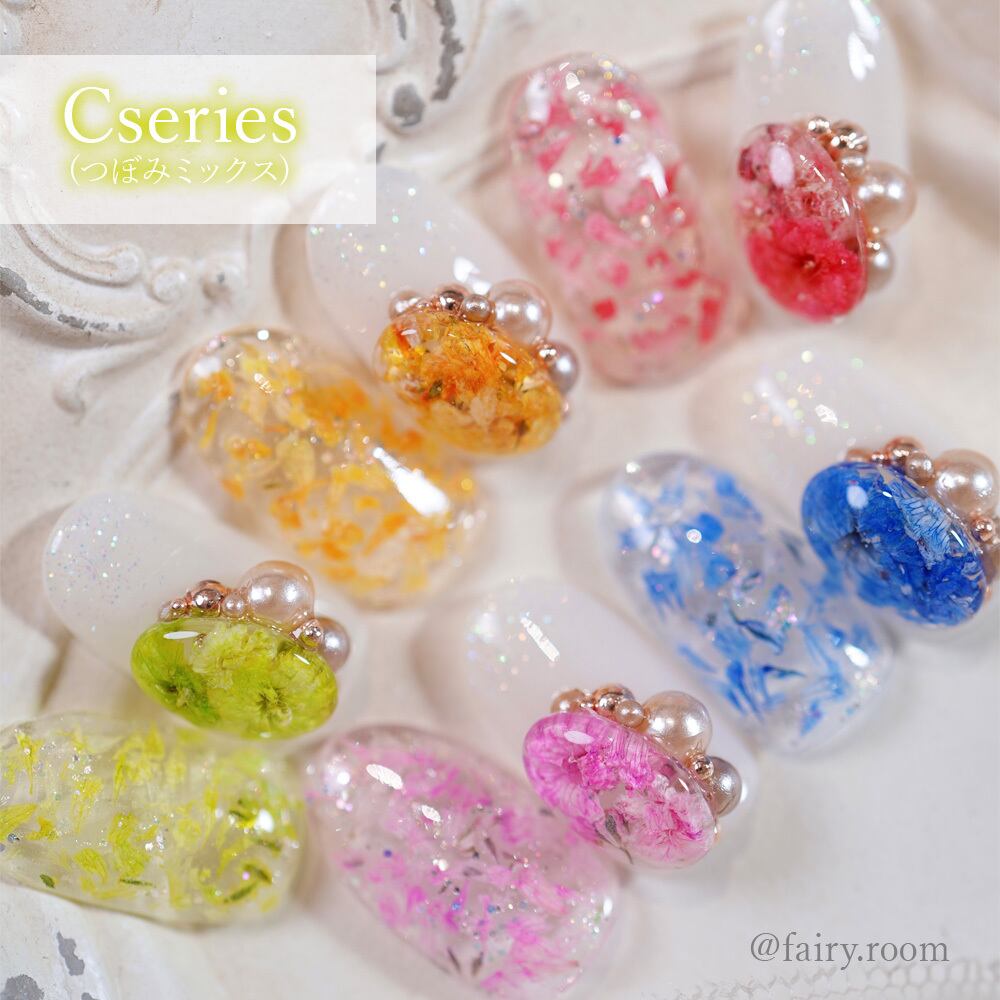 Cシリーズ:約0.2g(通常のCシリーズと異なり、小さなお花やつぼみも含まれるため、粒数ではなくグラム数で管理しています。)